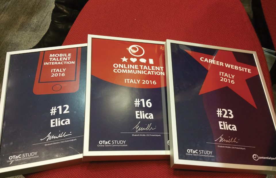 Le iniziative e le scelte di comunicazione perseguite da Elica in ambito HR sono state premiate da Potentialpark lo scorso 22 Febbraio 2016 riconoscendoci tra le 30 Top Companies in Italia che si sono contraddistinte per l’evoluzione della comunicazione dedicata alle selezioni dei talenti e dei candidati per le nuove opportunità di lavoro offerte. Il riconoscimento è avvenuto in seguito allo Studio OTaC 2016 (Online Talent Communication) che ci ha visto posizionati tra le migliori trenta aziende del mercato italiano nelle categorie Mobile Talent Interaction, Online Talent Communication e Career Website. Lo Studio annuale OTaC è il risultato di un ranking su scala globale, europea e nazionale delle performance aziendali in diversi mercati. La ricerca propone e suggerisce le buone pratiche per innovare in campo HR e noi condividiamo la linea suggerita affermando che non si può più fare a meno dei social: il mondo evolve e così anche il modo di fare selezioni. Perciò siamo presenti sui principali social network e abbiamo deciso di aprire altri canali come Instagram, Twitter e Pinterest. Linkedin a livello HR è il principale strumento grazie al quale negli ultimi due anni abbiamo chiuso una decina di selezioni, affiancato dal nostro sito dedicato alle risorse umane, che resta la prima piattaforma grazie alla quale facciamo molte selezioni. Orgogliosi di questi riconoscimenti, proseguiamo con le nostre iniziative di recruitment alla ricerca di nuovi talenti.