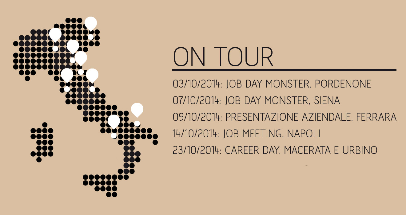 Con il nostro stand e i nostri esperti aziendali prenderemo parte a job meeting e career day per incontrare e conoscere i giovani neolaureati, con un’agenda che ci vedrà partecipare ad una serie di eventi in tutta Italia: